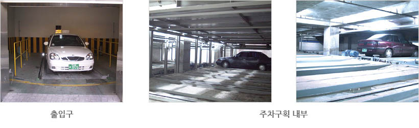 1) 승강장치 승입식 : 자동차를 입·출고시키기 위한 승하강 장치가 별도로 설치되어 출입구와 주차시키는 주차구획층까지 승하강 하면서 자동