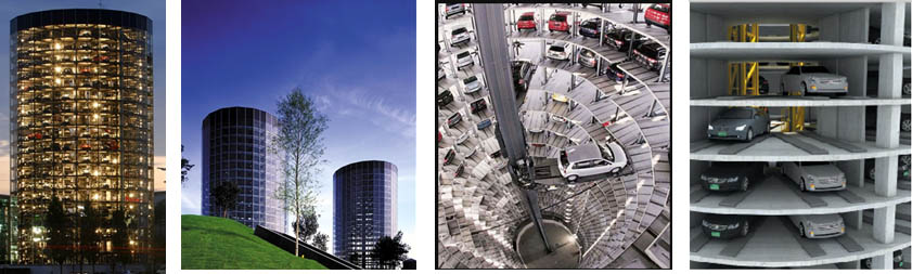 : 승강로 주위를 방사선 형태로 주차구획 을 배치하여 입·출고를 행하는 방식으로 공간 효율이 좋지 않다.